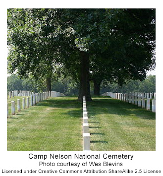 Camp Nelson National Cemetery is located about seven miles southeast of Nicholasville in Jessamine County, Ky. In 1866, the U.S. government appropriated approximately eight acres here to establish a cemetery. Of the original tract, about seven acres became the cemetery proper and the remainder formed a driveway extending from the main entrance to the old Danville Turnpike. An additional acre was purchased in 1874 that adjoined the southeast corner of the cemetery.